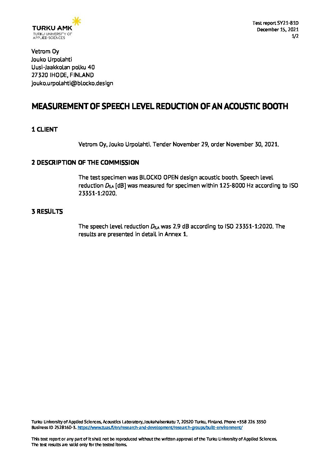 In order for non-sound emitting, acoustic enhancing building materials and office furniture to achieve Quiet Mark certification, manufacturers are required to submit full acoustic test reports to the Quiet Mark technical team, as well as information on the different types of buildings and/or environments it could be present at. The testing, carried out to exacting ISO standards, should show the effect of sound when interacting with the product or surface. For acoustically designed products, like the BlockO and BlockO Base, need to demonstrate an acoustic benefit, such as sound absorption (to reduce reverberation and provide good speech conditions) as well as sound attenuation (to stop the spread of speech from within the booth to other areas and vice versa).